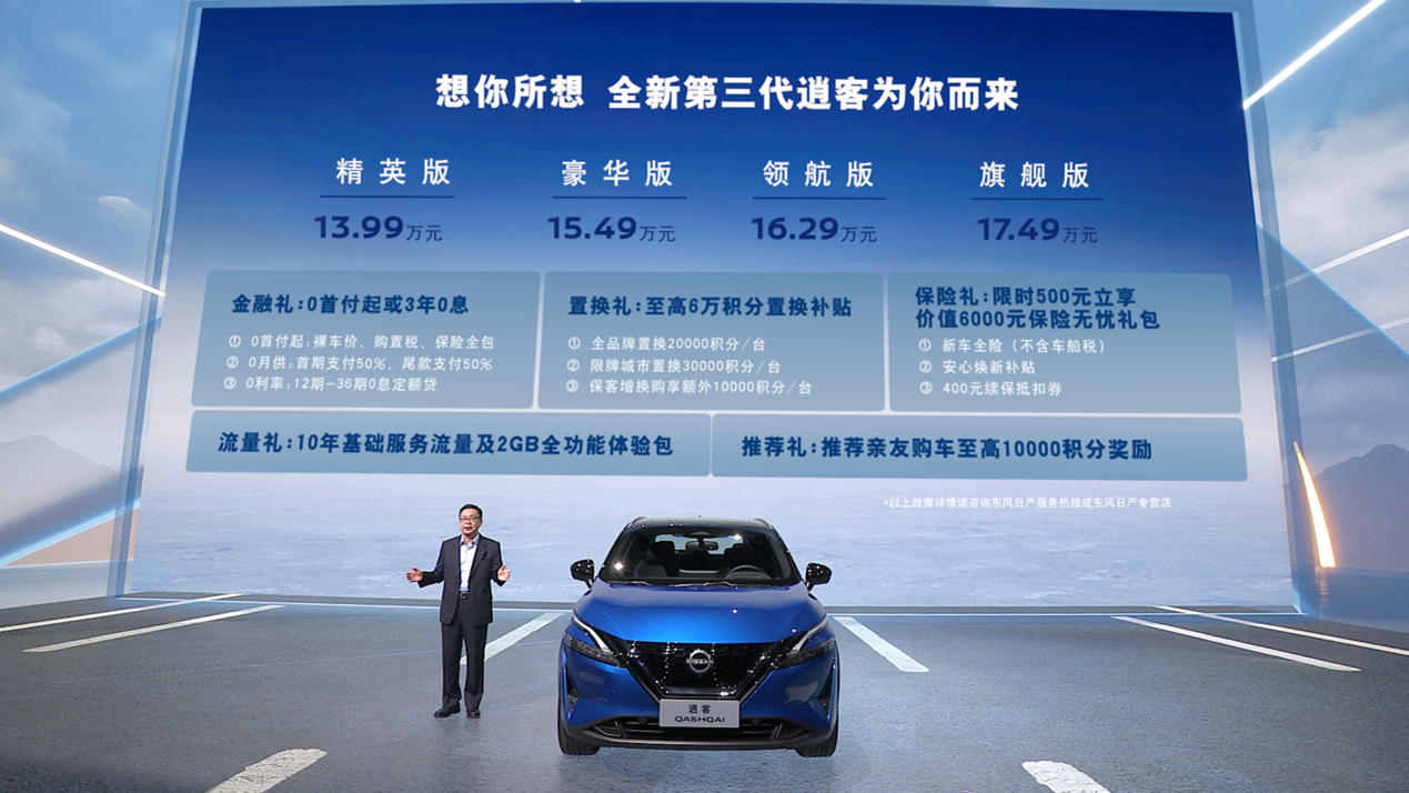 全新第三代逍客官方指導(dǎo)價13.99萬元起,并帶來金融禮、置換禮、保險禮等多重購車福利,助力積極進取、自在向前的年輕人輕松擁有,從容出發(fā),享受人生中每一個精彩時刻。