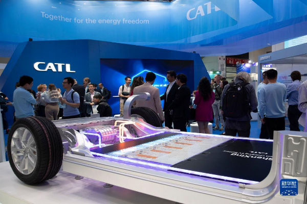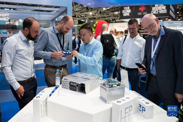 9月5日,人們?cè)诘聡?guó)慕尼黑國(guó)際車(chē)展的寧德時(shí)代展區(qū)咨詢洽談。