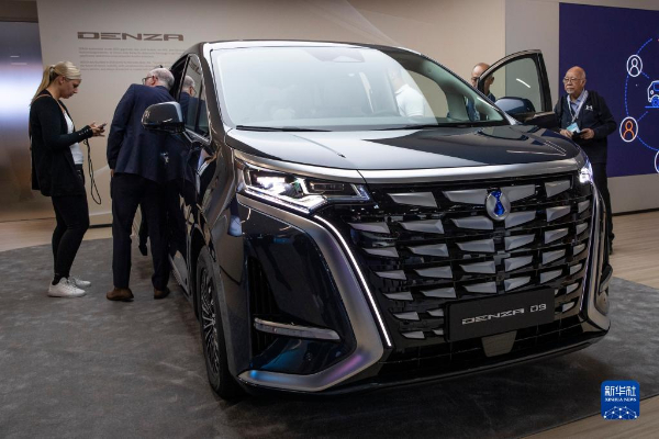 9月4日,在德國(guó)慕尼黑國(guó)際車(chē)展媒體預(yù)展上,人們?cè)诒葋喌掀放瓢l(fā)布會(huì)現(xiàn)場(chǎng)體驗(yàn)騰勢(shì)D9汽車(chē)。
