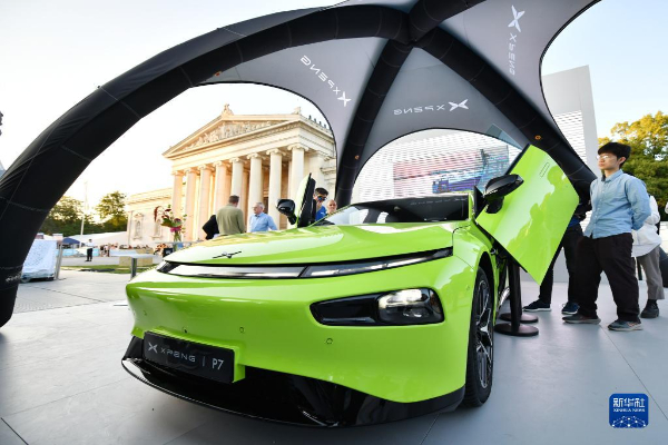 9月5日,人們?cè)诘聡?guó)慕尼黑國(guó)際車(chē)展的城市公共展示區(qū)參觀小鵬汽車(chē)。