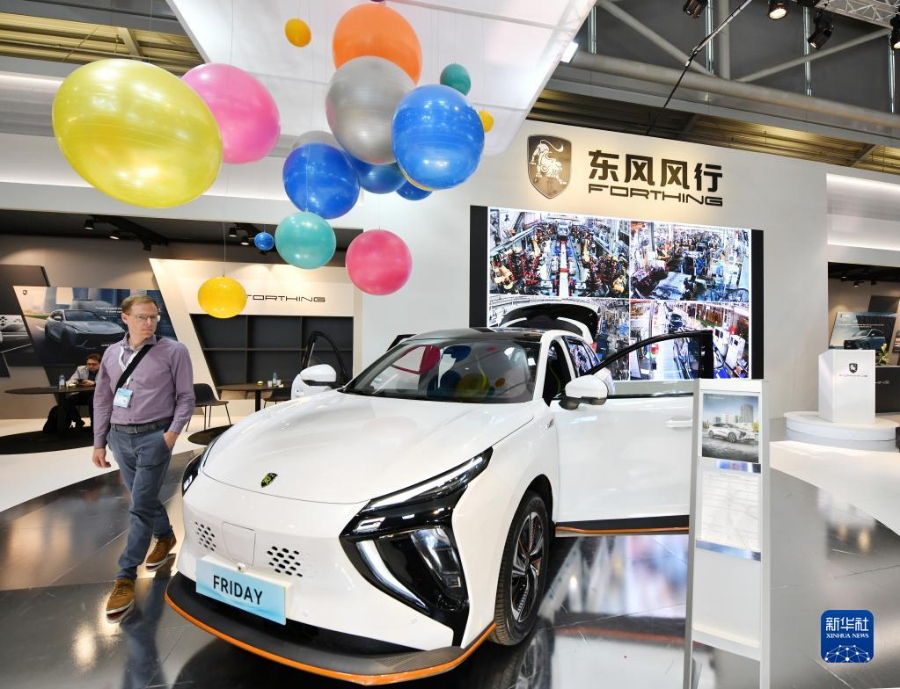 9月6日,一名男子在德國(guó)慕尼黑國(guó)際車(chē)展的東風(fēng)風(fēng)行展區(qū)參觀。