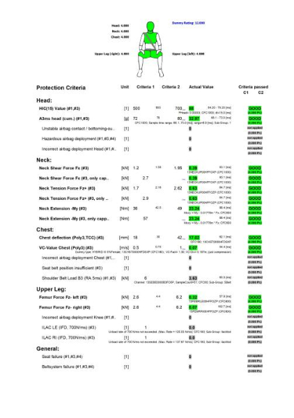 從試驗結(jié)果來看,車輛潰縮區(qū)吸能狀態(tài)良好,前潰縮區(qū)很好的吸收了臺車撞擊后的能量;乘員艙完整且乘員生存空間充足,車門可以順利打開;約束系統(tǒng)方面,氣囊正常點爆,假人頭部與氣囊在碰撞過程中接觸穩(wěn)定,車內(nèi)假人被約束在座椅上,安全帶未發(fā)生失效且座椅安裝點及座椅骨架也無明顯變形;從現(xiàn)場假人測量數(shù)據(jù)看,副駕駛側(cè)假人的頭部、頸部、胸部等部位受到的傷害值很小,各項數(shù)據(jù)指標均低于高性能限值,成績?yōu)闈M分。本次試驗驗證了全新紅旗HS7在正面副駕駛碰撞中,對車內(nèi)乘員保護性能良好。