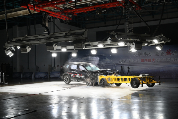 100km/h高速對碰 全新紅旗HS7成功過關 本次碰撞試驗,在中國汽車技術(shù)研究中心實車碰撞實驗室進行。經(jīng)過鹽水噴淋試驗后的全新紅旗HS7與試驗臺車,以100km/h的相對速度,進行車輛正面副駕駛側(cè)50%對碰。