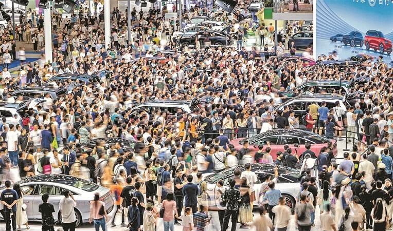 車展現(xiàn)場人潮涌動(dòng),前兩日迎來觀眾超30萬人次。
