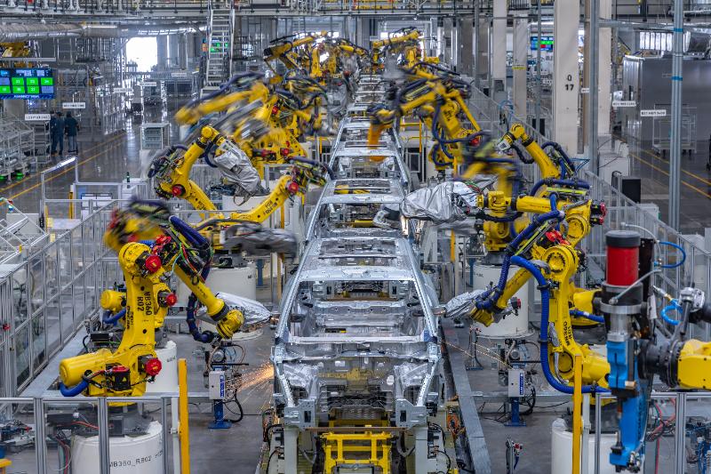 (資料圖片)在位于重慶兩江新區(qū)的賽力斯超級工廠,焊裝車間生產線上的機器人在精準執(zhí)行作業(yè)指令。新華社記者 黃偉 攝