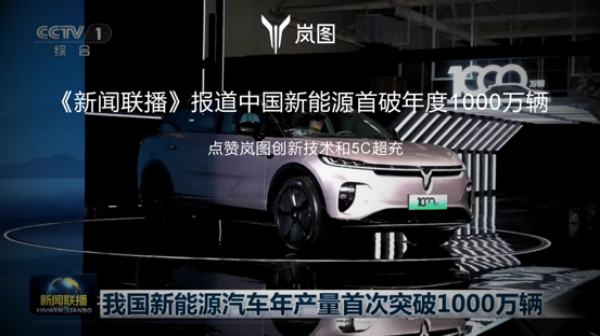 這是兩個(gè)月內(nèi),嵐圖汽車第二次出現(xiàn)在央視節(jié)目中。此前,11月14日,2024年中國新能源汽車1000萬輛達(dá)成活動(dòng)在嵐圖汽車云峰工廠盛大舉行,嵐圖知音作為1000萬輛中國新能源汽車下線的代表車型,分別被《朝聞天下》《新聞30分》《新聞聯(lián)播》等節(jié)目報(bào)道。