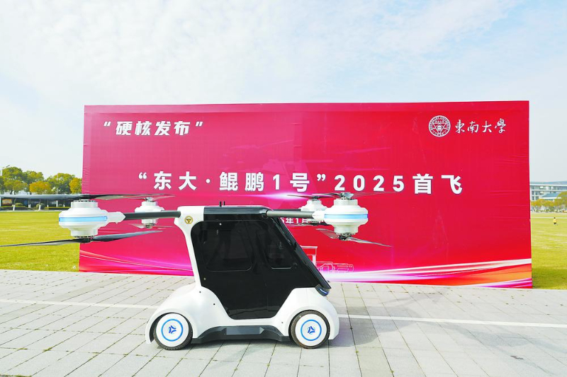 1月1日,東南大學(xué)發(fā)布了由其科研團(tuán)隊(duì)自主研發(fā)的國(guó)內(nèi)首輛分布式電驅(qū)動(dòng)飛行汽車(chē)——“東大·鯤鵬1號(hào)”。該飛行汽車(chē)是國(guó)內(nèi)首輛全輪轉(zhuǎn)向全輪驅(qū)動(dòng)、四軸八槳構(gòu)型飛行汽車(chē),也是江蘇省首輛陸空一體飛行汽車(chē)。
