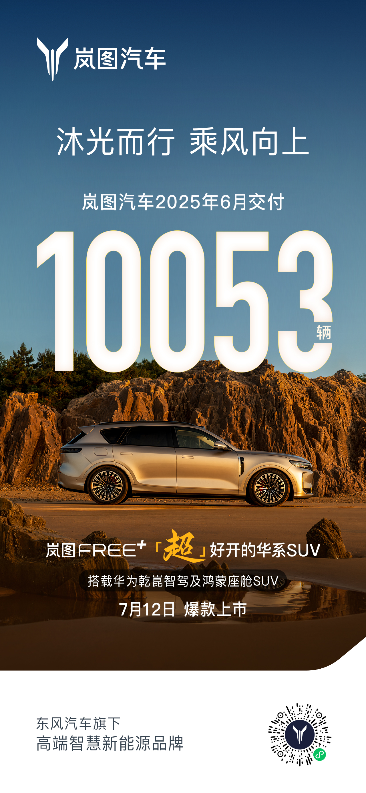 同比增長83%!嵐圖汽車6月交付10053輛 嵐圖FREE+7月12日上市