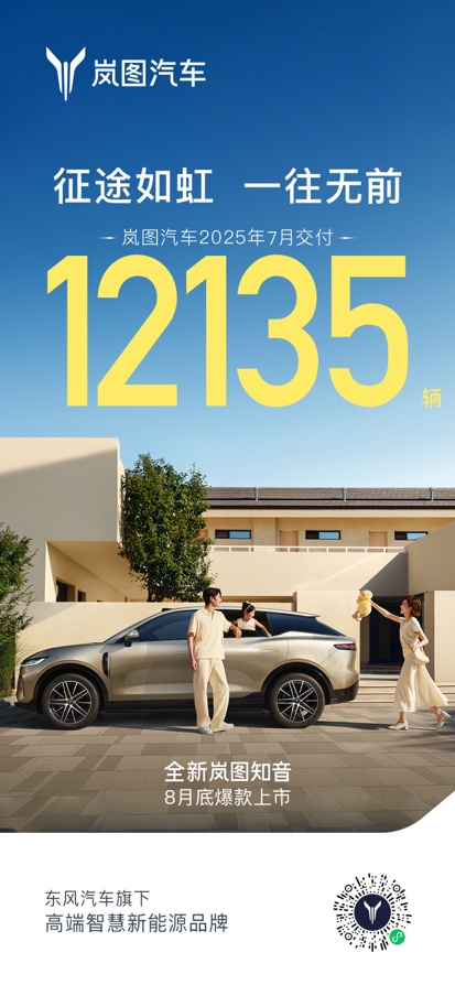 嵐圖汽車CEO盧放表示:“在用戶的支持下,嵐圖汽車7月延續(xù)高質(zhì)量發(fā)展態(tài)勢(shì),嵐圖夢(mèng)想家穩(wěn)居銷量冠軍,全新上市的嵐圖FREE+也快速獲得市場(chǎng)認(rèn)可,這進(jìn)一步堅(jiān)定了我們的發(fā)展信心。8月,我們將更進(jìn)一步提速生產(chǎn)交付、升級(jí)服務(wù)體驗(yàn)、加強(qiáng)用戶交流,并推出新產(chǎn)品——全新嵐圖知音,為用戶帶來更多優(yōu)質(zhì)選擇,為品牌發(fā)展注入更強(qiáng)動(dòng)能?!?/p>