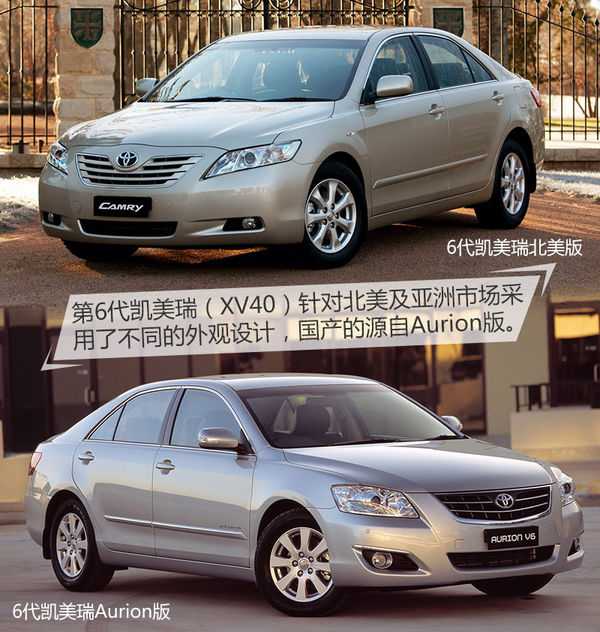 第6代凱美瑞(XV40)誕生于2006年,6月17日正式上市,由廣汽豐田進(jìn)行本土化生產(chǎn)。雖然是豐田的全球化車型,但是XV40針對北美及亞洲市場采用了不同的外觀設(shè)計(jì)。北美版的車燈更加“鋒利”更加年輕運(yùn)動(dòng),而國產(chǎn)的凱美瑞則采用了更加符合東方審美的亞洲版造型,又被稱作Prestige版或Aurion版。