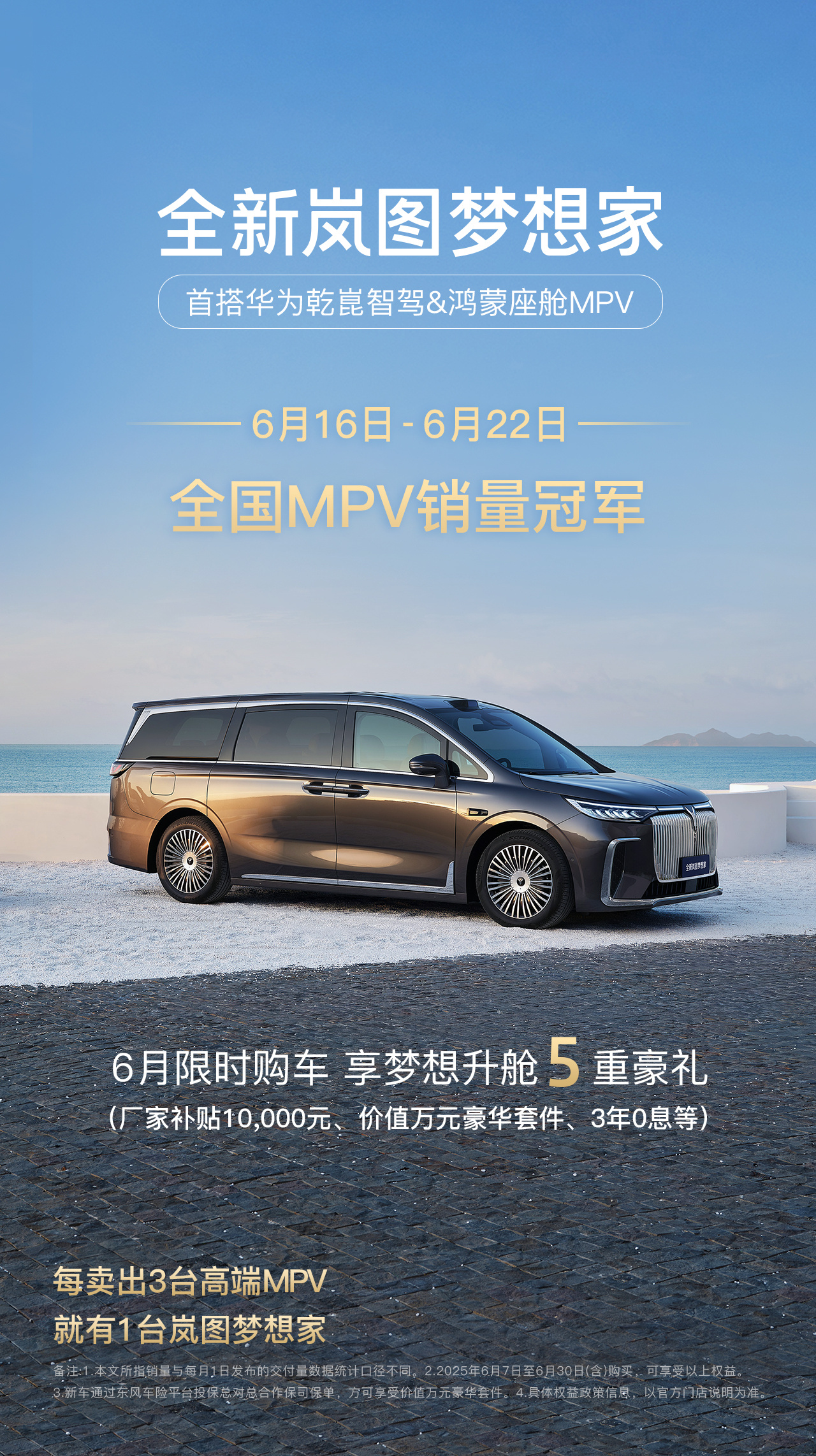 嵐圖夢(mèng)想家6月官宣限時(shí)銷(xiāo)售政策,立省5.5萬(wàn)元現(xiàn)金以及0元升級(jí)價(jià)值萬(wàn)元豪華套件,在政策與產(chǎn)品力雙重疊加下,嵐圖夢(mèng)想家成為當(dāng)下MPV市場(chǎng)熱銷(xiāo)產(chǎn)品。