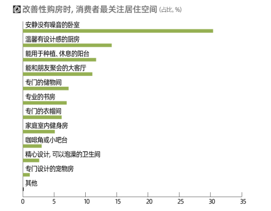 《報告》發(fā)現(xiàn):消費(fèi)者在住房消費(fèi)領(lǐng)域需求變化呈現(xiàn)出“在居住空間方面,追求個性化、審美化、輕奢化等”;“在居住生活品質(zhì)方面,需求從房屋本身向社區(qū)配套、鄰里關(guān)系等外部延展”等特點(diǎn)。