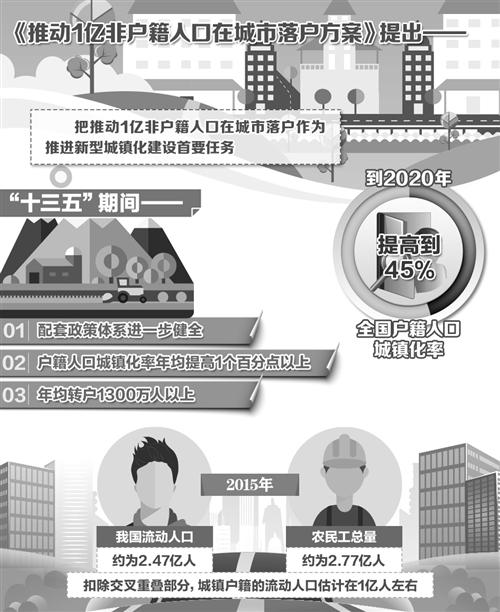 如何推動(dòng)1億左右農(nóng)業(yè)轉(zhuǎn)移人口和其他常住人口等非戶籍人口在城市落戶,使有能力在城鎮(zhèn)穩(wěn)定就業(yè)和生活的農(nóng)業(yè)轉(zhuǎn)移人口舉家進(jìn)城落戶,是我國推進(jìn)新型城鎮(zhèn)化面臨的迫切任務(wù)。不久前,國務(wù)院辦公廳印發(fā)了《推動(dòng)1億非戶籍人口在城市落戶方案》(以下簡(jiǎn)稱《方案》)。