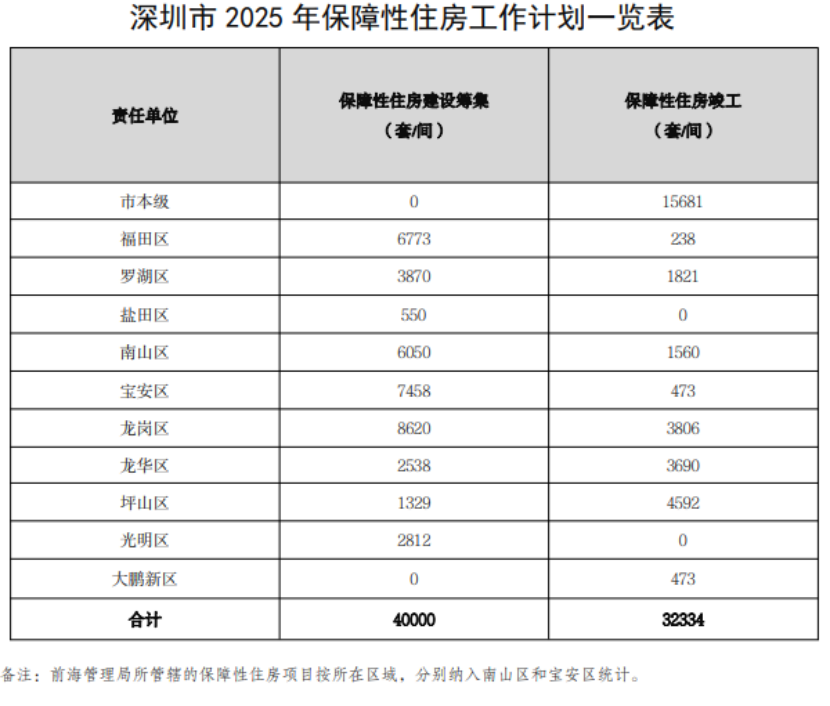 2025年,深圳計(jì)劃新安排建設(shè)籌集保障性住房4萬套(間),計(jì)劃竣工保障性住房3.23萬套(間)。
