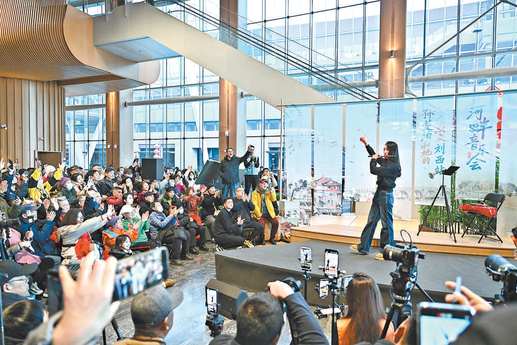 “國(guó)民閨女”、青年笛簫演奏家孫楚泊在北京大運(yùn)河博物館演出。