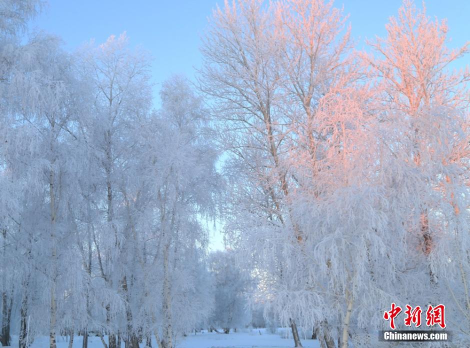 新疆阿勒泰罕見(jiàn)降雪后 現(xiàn)千里霜掛美景