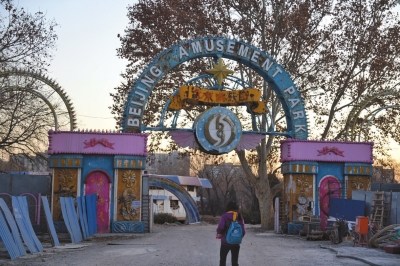 昔日熱鬧的北京游樂園大門已顯破敗。記者譚青攝