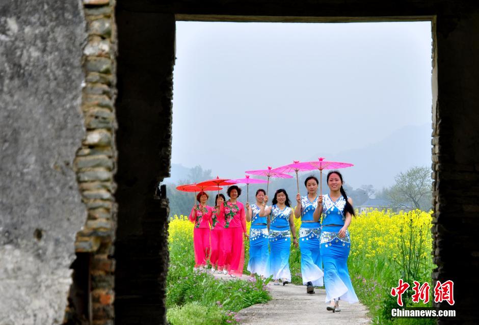 3月20日,江西省德興市??阪?zhèn)杜村婦女在田間花海“走秀”。當(dāng)日,江西德興市??阪?zhèn)杜村一批家庭婦女以千畝油菜花海為舞臺(tái),展示自己的才藝形象,希望宣傳家鄉(xiāng)的自然生態(tài)與人文歷史,擴(kuò)大旅游知名度和影響力。德興市??阪?zhèn)杜村交通便利,自然風(fēng)光優(yōu)美,村內(nèi)有歷史古跡和名木古樹。 胡敦煌 攝
