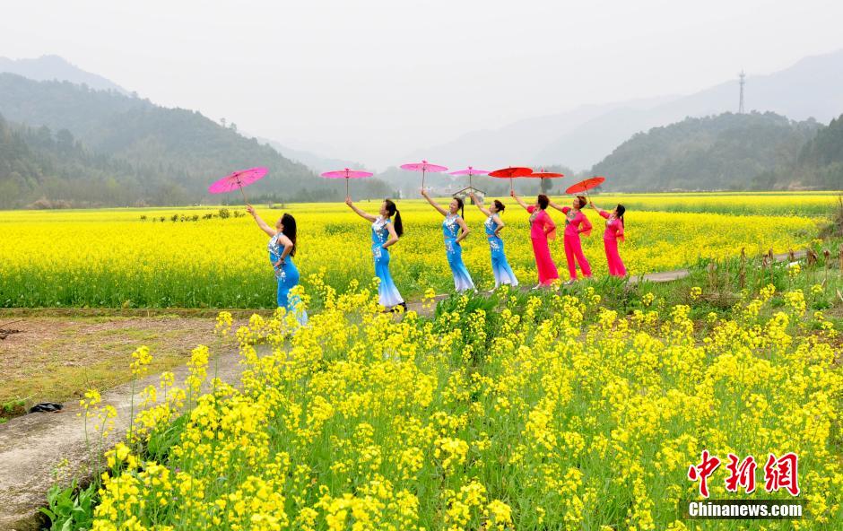 3月20日,江西省德興市海口鎮(zhèn)杜村婦女在田間花?!白咝恪薄.?dāng)日,江西德興市海口鎮(zhèn)杜村一批家庭婦女以千畝油菜花海為舞臺,展示自己的才藝形象,希望宣傳家鄉(xiāng)的自然生態(tài)與人文歷史,擴(kuò)大旅游知名度和影響力。德興市海口鎮(zhèn)杜村交通便利,自然風(fēng)光優(yōu)美,村內(nèi)有歷史古跡和名木古樹。 胡敦煌 攝