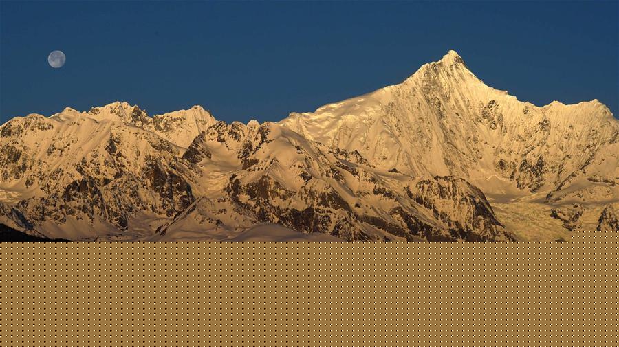 這是3月25日清晨拍攝的梅里雪山“日月同輝”景觀。梅里雪山位于滇藏交界的云南省迪慶藏族自治州德欽縣境內(nèi),是世界自然遺產(chǎn)“三江并流”的主要自然景觀之一。梅里雪山常年云霧籠罩,太陽光只在少數(shù)天晴的清晨照射在雪山頂上,形成絕美的“日照金山”美景。有時月亮尚未落山,太陽已經(jīng)升起,更是形成了難得一見的梅里雪山“日月同輝”奇觀。新華社記者 王長山 攝