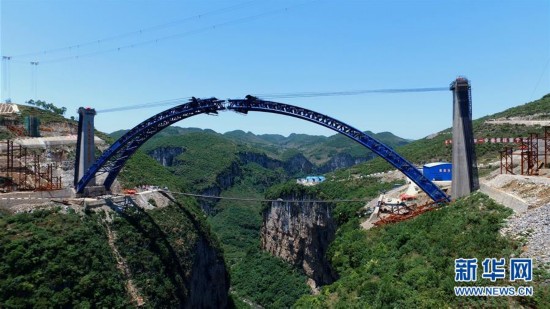 即將合龍的西溪河大橋(5月10日攝)。西溪河大橋位于貴州畢節(jié)地區(qū),是成都至貴陽高速鐵路的重難點控制性工程。正在建設(shè)中的成貴鐵路將經(jīng)過包括紅軍二渡赤水的決策地——云南威信縣在內(nèi)的四川、貴州、云南省境內(nèi)的多個縣市,革命老區(qū)威信將在不久的將來結(jié)束沒有鐵路的歷史,邁入高鐵時代。 “紅軍不怕遠征難,萬水千山只等閑?!遍L征譜寫了一曲人類征服自然的凱歌,峽谷激流、雪山草地、物資匱乏、生命禁區(qū),這一切都不能阻擋紅軍前進的步伐。80年過去,滄海桑田,紅軍長征走過的荒郊野嶺,如今樓宇林立,欣欣向榮;徒步翻越的大山、攻克的關(guān)隘、沼澤遍布的草地、泅渡的河流,修起了通暢快捷的公路和大橋……長征之路發(fā)生了翻天覆地的變化,昔日的艱難險阻正漸漸變成康莊通途。新華社發(fā)(王會堂攝)