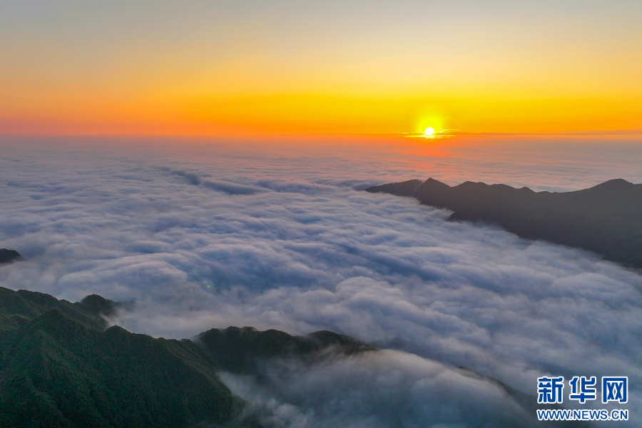 日出群山,宛如一幅水墨畫卷(視頻截圖)。新華網(wǎng)發(fā)(大關縣融媒體中心供圖)