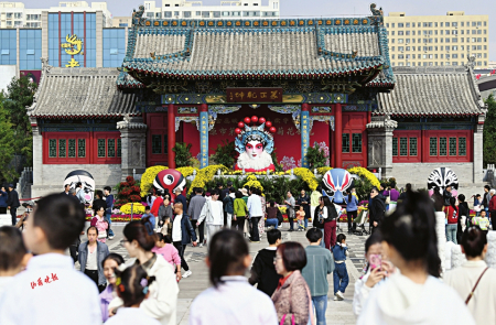 省城不少市民也選擇了“家門口的旅游”,國慶假期也是踏園賞菊的好時(shí)節(jié),太原市第三十四屆菊花展的主會場——雙塔公園,打造了7000平方米的賞花區(qū),10余萬株各類菊花競相開放。走進(jìn)雙塔公園,首先映入眼簾的是色彩斑斕的菊花展,公園內(nèi)精心布置的“祝福祖國”、“錦繡梨園”等主題花壇,仿佛將秋天的色彩搬到了這里,為豐富展覽內(nèi)容形式,公園同時(shí)舉辦迎國慶剪紙文創(chuàng)展、中華姓氏家訓(xùn)家風(fēng)展、古裝花船游等活動,為廣大游客帶來豐富的游覽體驗(yàn)。