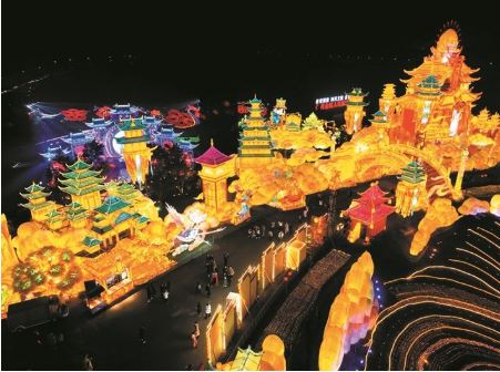 本屆燈會打造“迎春賀年”“華彩神州”“歡樂盛典”“文明交輝”等七大主題區(qū),展出12組特大型燈組、7組大型燈組以及200余組中小型燈組,燈組規(guī)模創(chuàng)歷屆自貢燈會之最。