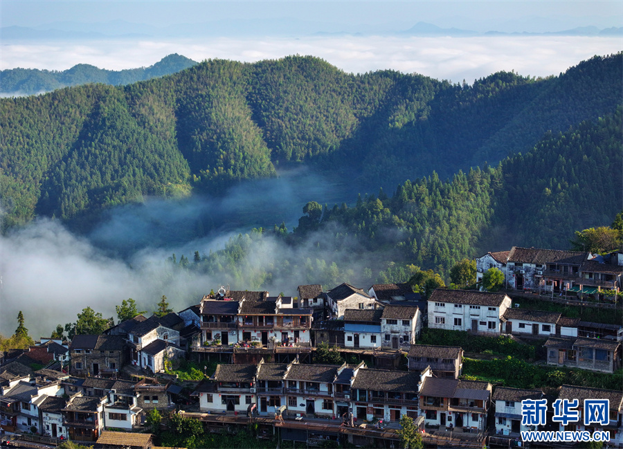 安徽黃山:云上村落畫秋意