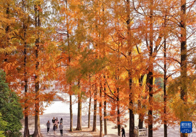 11月19日,游客在江蘇省蘇州市拙政園游玩(無人機(jī)照片)。新華社發(fā)(王須中 攝)