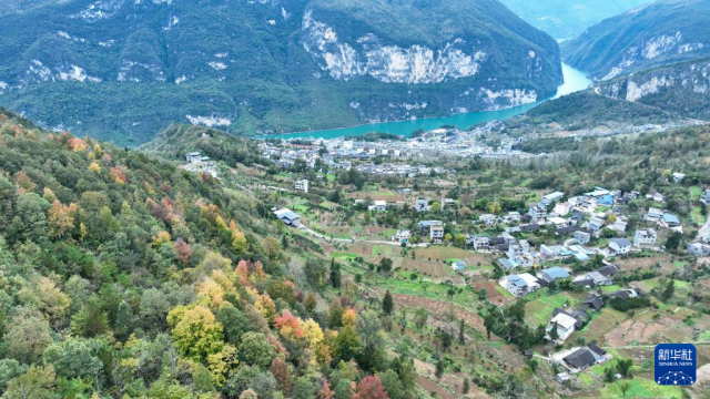 重慶市酉陽土家族苗族自治縣龔灘鎮(zhèn)層林盡染(11月18日攝,無人機(jī)照片)。新華社發(fā)(邱洪斌攝)