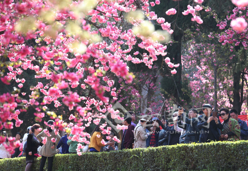3月13日,昆明圓通動(dòng)物園人潮涌動(dòng),數(shù)千株櫻花和海棠進(jìn)入盛花期,吸引大批游客前來賞花觀景。