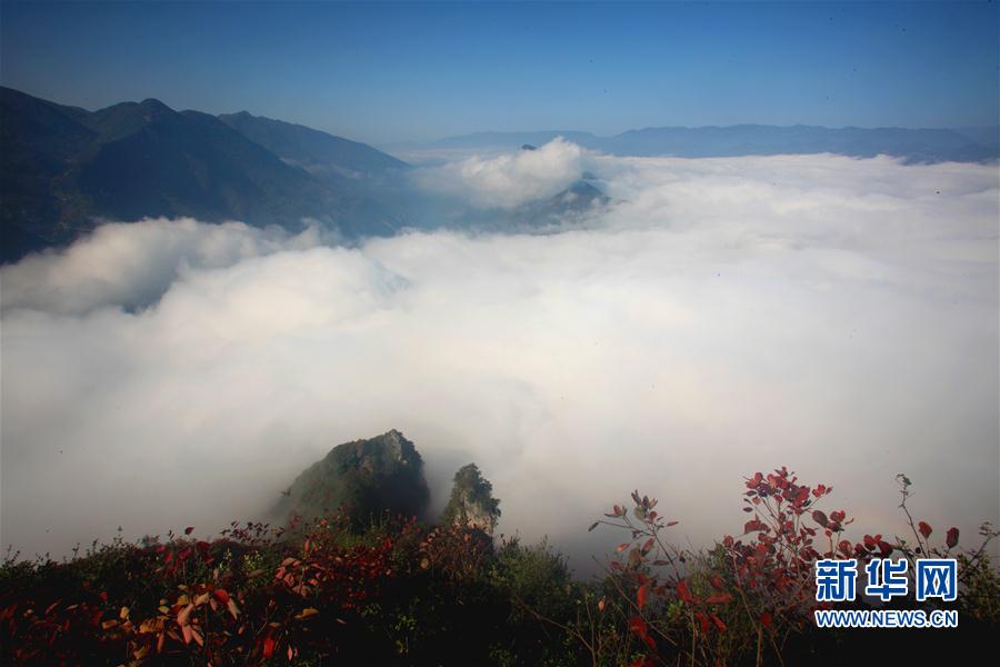 2016年11月11日 巫峽云海 這是11月11日在巴東大面山拍攝的巫峽云海景觀。當(dāng)日,地處湖北恩施的長(zhǎng)江三峽巫峽口云霧繚繞,與漫山遍野的紅葉相映成趣。 新華社發(fā)(文振效 攝)