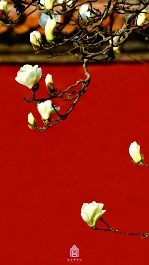 其實(shí),早在放送杏花美照之前,已經(jīng)有玉蘭出鏡了。仲春,紫禁城里難覓迎春花的蹤影,所以玉蘭擔(dān)起了“迎春”的職責(zé)。同樣是紅墻琉璃瓦的旁邊,玉蘭花迎著輕柔的陽(yáng)光,沐浴在春日的暖風(fēng)里。
