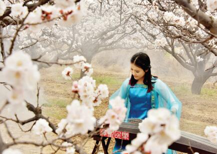 在近日舉辦的繁峙趙莊杏花節(jié)上,一名身穿古裝的女子正在杏花爛漫的杏園里進(jìn)行古箏彈奏表演。近年來,作為全國“一村一品”示范村的繁峙縣趙莊村,種植杏樹面積達(dá)5200畝。去年,全村出售白水大杏樹苗40 萬株、白水大杏150 萬公斤,總收入達(dá)800 多萬元,人均年收入達(dá)到13000 元。(喬偉 攝)