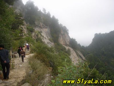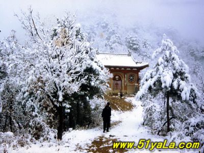 北武當(dāng)山主峰四周幾乎都是陡壁懸崖,只有一條人造“天梯”可攀。來到山腳下,過五里黃土、五里沙路,便是1400余級(jí)就山鑿筑的石階,凡險(xiǎn)峻之處,設(shè)有鐵索扶手。石階一線疊置,從下仰視,宛如“天梯”。游人攀登,每一步都可聽到悠揚(yáng)頓挫的“石音”,形成獨(dú)特的“石樂”絕景。沿著石階,奇松異石、廟宇石刻,掩沒在蔥郁的山林植被之中,相間點(diǎn)綴,相映成趣。主要的山石景觀有:古猿望日、石豬受難、九龍出洞、石象守山、天壺傾露、石羊朝圣、石龜下蛋、石虎、石蛤蟆、龜蛇斗智等。最令人稱奇的是“龜蛇斗智”奇觀,相傳神龜和青蛇不安心修道,互相格斗,經(jīng)過七七四十九天的麈戰(zhàn),神龜節(jié)節(jié)敗退,青蛇步步緊逼。其時(shí),恰逢真武大帝返宮,見狀,輕輕用手指一點(diǎn),龜蛇便動(dòng)彈不得,從此永久停留在這里,成千古一絕——“蛇石”虎視眈眈,“龜石”尾臨懸崖,萬斤重石,峭立崖畔,用力一推或經(jīng)風(fēng)一吹,便搖搖欲墜,令人心懸,所以又稱風(fēng)動(dòng)石,為我國(guó)罕見的景觀之一。主要的奇松景觀有:鴛鴦松、迎客松、托天松、母子松等。最使人嘆為觀止的是“擎天探海松”,其松立于石階半道,樹身技分兩杈,一直刺青天,一枝瞰群峰。近金頂?shù)悄咸扉T石階,旁邊陡崖上刻有“喬松”二字,據(jù)載為清代道光年間永寧州牧王繼賢手跡?,F(xiàn)存喬松樹樁直徑近1米,可以想見其昔日雄姿。主要的懸崖峭壁有:千仞壁、舍身崖、鷹嘴崖等。還有呈垂直分布的植被,其色彩和花期隨季節(jié)變化,給北武當(dāng)山披上了“春粉、夏艷、秋紅、冬白”的盛裝。登臨武當(dāng)之巔,一覽眾山,但見遠(yuǎn)山蒼茫,近日含黛,松風(fēng)撲面,白云飄逸;只聞松濤陣陣,山泉潺潺,鳥語唧唧,似琴弦輕撥;夏秋之季,如晴空萬里,金頂之下,叢林景觀相間,似七彩織錦;白云遠(yuǎn)處,群山連綿,猶如萬龍翻騰,極為壯觀。