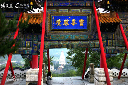 沿一百零八級石階登高,按照佛家的說法,就把人間的一百零八種煩惱踩在腳下了。置身牌樓下,手撫門柱,回身四望,遠處的山,山上的云,近處的清水河,雄壯多姿的寺廟建筑群,都收入眼中,深感“靈峰勝境”四個字點得妙。這里,是很好的登高覽勝的觀景點。一九四八年春,黨中央機關從延安開赴河北省西柏坡,途中路過五臺山,陳毅同志作詩道:“本不游五臺,迂道時日緊,至今有余歡,曾踏菩薩頂?!?/p>