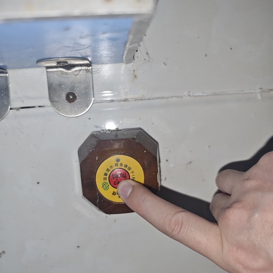 按鈕的正中央寫(xiě)著醒目的“呼叫”二字,旁邊還有一圈提示文字“服務(wù)請(qǐng)按下1秒”。記者按照指引按下按鈕,只見(jiàn)紅燈閃爍了一下,待到松開(kāi)手后,亮光便消失了。記者反復(fù)測(cè)試多次,除了閃爍又熄滅的紅燈,沒(méi)有任何撥號(hào)接通及報(bào)警的聲音。等候多時(shí),也沒(méi)見(jiàn)工作人員前來(lái)查看。