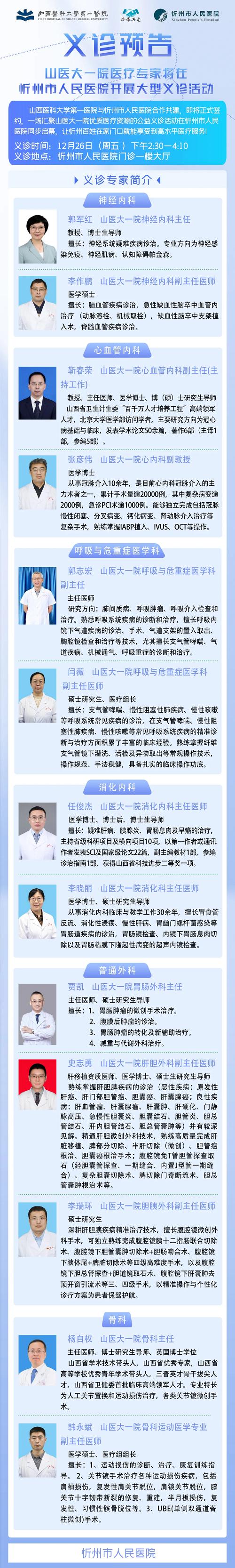 【義診預(yù)告】12月26日,山西醫(yī)科大學(xué)第一醫(yī)院醫(yī)療專家將在忻州市人民醫(yī)院開展義診活動(dòng)