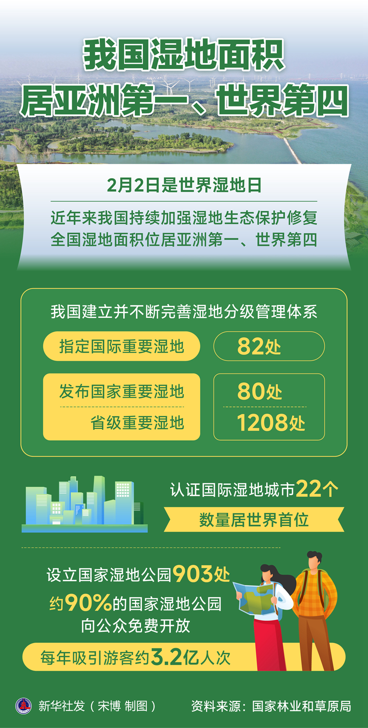 新華社北京2月2日電(記者黃垚)2月2日是世界濕地日。記者當(dāng)天從國家林業(yè)和草原局獲悉,近年來我國持續(xù)加強(qiáng)濕地生態(tài)保護(hù)修復(fù),全國濕地面積位居亞洲第一、世界第四,濕地保護(hù)形成重點治理和分類保護(hù)相結(jié)合的新格局。