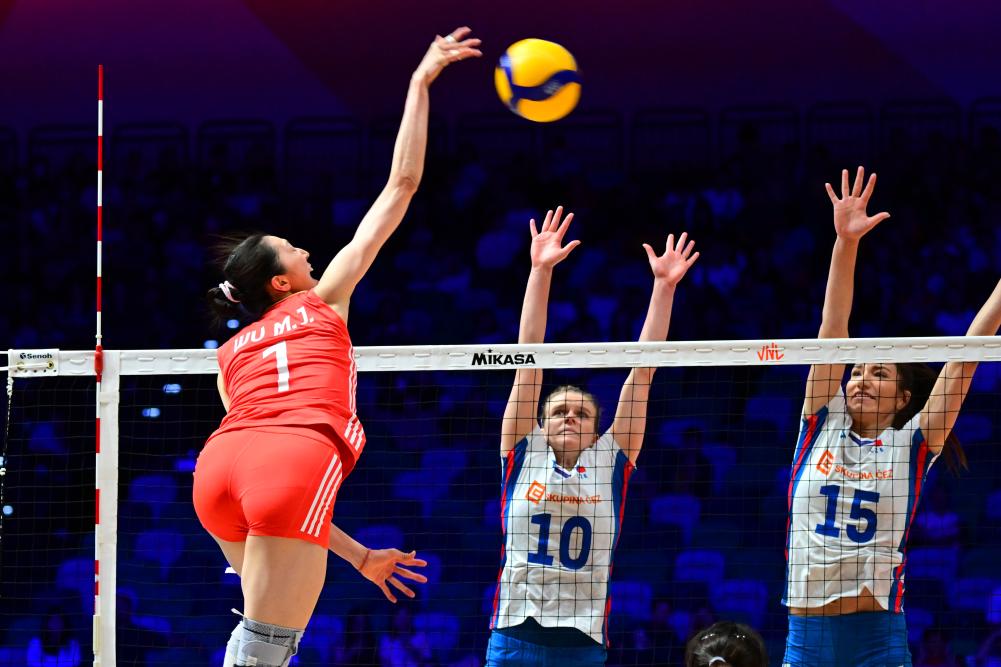 面對捷克隊的攻勢,中國隊主教練趙勇提醒隊員放開進攻,“不能保守”。果然,中國隊氣勢上壓倒對手,以25:15拿下第三局。