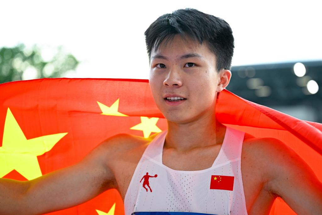 7月24日,舒衡在比賽后慶祝奪冠。 新華社發(fā)(烏爾里?!ず蚣{格爾攝)