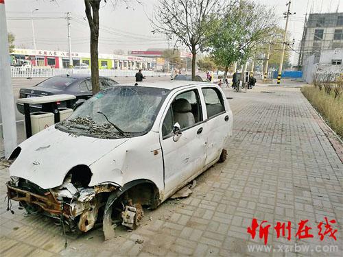 忻州城區(qū)長(zhǎng)征西街路南、武警支隊(duì)大門西側(cè),有輛破爛不堪的汽車,長(zhǎng)時(shí)間停在人行道上,且占據(jù)著盲道。希望相關(guān)部門能夠及時(shí)處理。(張宏志 攝)