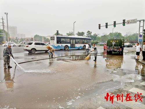 據(jù)了解,為了確保城區(qū)道路干凈整潔,市環(huán)衛(wèi)處組織工人,利用早晚車少人少時(shí)段,對城區(qū)街道進(jìn)行定期清洗。也希望他們的行為,進(jìn)一步喚起公眾對城市的熱愛,從而推動(dòng)城市文明建設(shè)不斷向前發(fā)展,共同創(chuàng)造清潔、文明、和諧的市容環(huán)境。圖為環(huán)衛(wèi)工人正在清洗街道 張志遠(yuǎn)攝