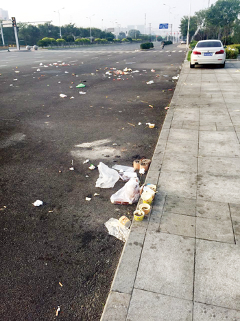 城區(qū)高鐵廣場前,慕山路與雁門大道丁字路口,每天晚上有小商販在此經營,本無可厚非,但每天產生的垃圾,既影響市容環(huán)境,還給環(huán)衛(wèi)工人增加了工作量,呼吁市民及小商販愛護環(huán)境,也希望相關部門管理維護公共環(huán)境。一網友攝于8月22日