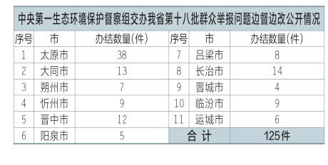 中央第一生態(tài)環(huán)境保護(hù)督察組交辦我省第十八批群眾舉報問題125件,辦結(jié)125件。公示125件,其中太原市38件、大同市13件、朔州市7件、忻州市9件、晉中市12件、陽泉市5件、呂梁市8件、長治市14件、晉城市4件、臨汾市9件、運城市6件??傻卿浬轿魇∪嗣裾W(wǎng)站或掃描二維碼查閱群眾信訪舉報轉(zhuǎn)辦和邊督邊改公開情況一覽表。