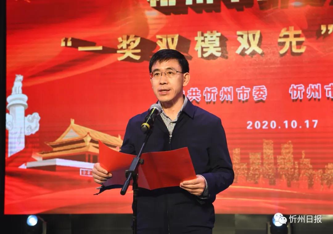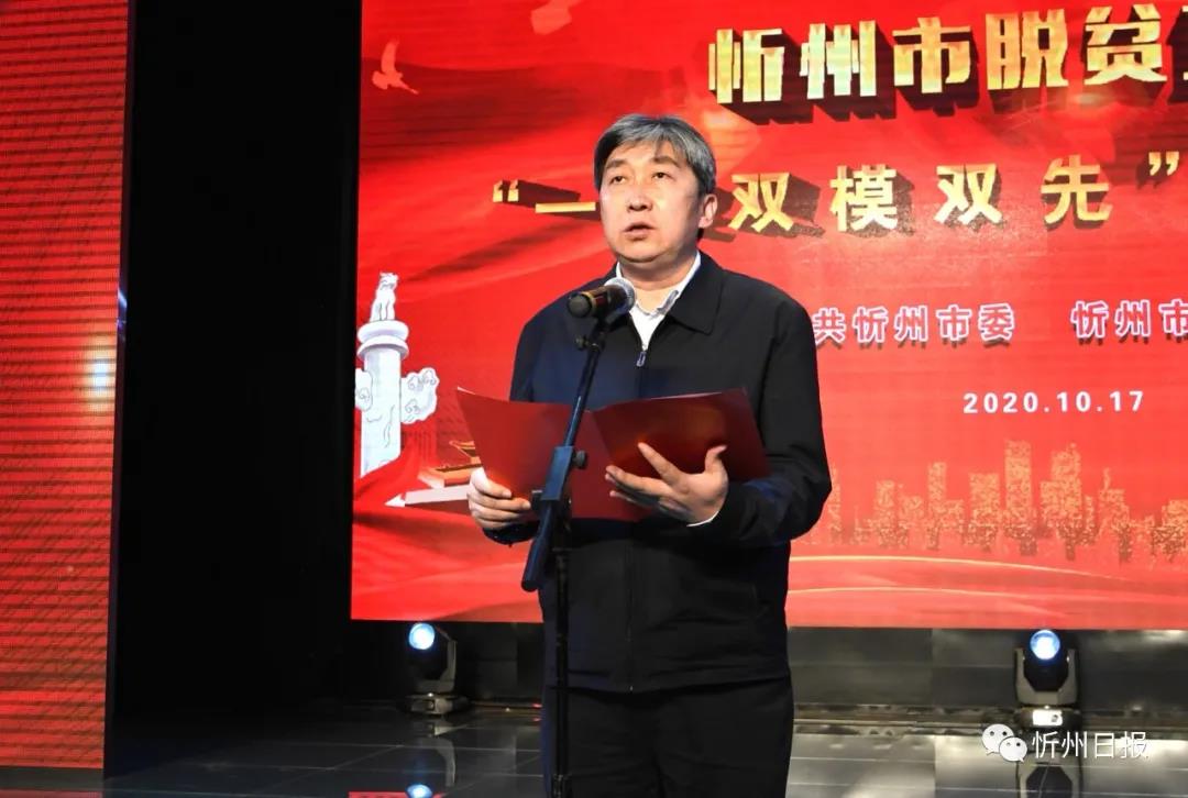 秦書義宣讀《中共忻州市委忻州市人民政府〈關(guān)于表彰2020年忻州市脫貧攻堅(jiān)“一獎(jiǎng)雙模雙先”的決定〉》。劉紀(jì)森攝