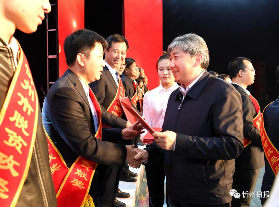 為弘揚(yáng)忻州扶貧精神,凝聚決戰(zhàn)收官力量,為決戰(zhàn)完勝脫貧攻堅(jiān)、全面建成小康社會(huì)繼續(xù)努力、不懈奮斗,在第7個(gè)全國(guó)扶貧日來(lái)臨之際,10月17日,我市隆重舉行脫貧攻堅(jiān)“一獎(jiǎng)雙模雙先”頒獎(jiǎng)儀式。市委書記鄭連生,市委副書記、市長(zhǎng)朱曉東,市委常委、組織部長(zhǎng)秦書義,市委常委、秘書長(zhǎng)崔建新,副市長(zhǎng)裴峰,市政協(xié)副主席高志偉,市人大常委會(huì)秘書長(zhǎng)張?zhí)m軍出席頒獎(jiǎng)儀式并為獲獎(jiǎng)?wù)哳C獎(jiǎng)。部分專項(xiàng)扶貧辦公室代表、各縣(市、區(qū))分管扶貧副縣(市、區(qū))長(zhǎng)、扶貧辦主任、獲獎(jiǎng)代表等共計(jì)210余人參加。