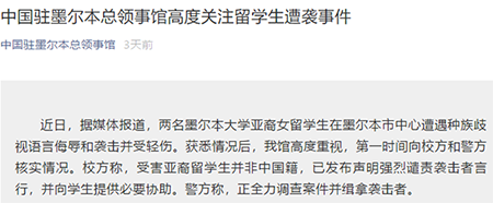 中國駐墨爾本總領事館微信公號截圖
