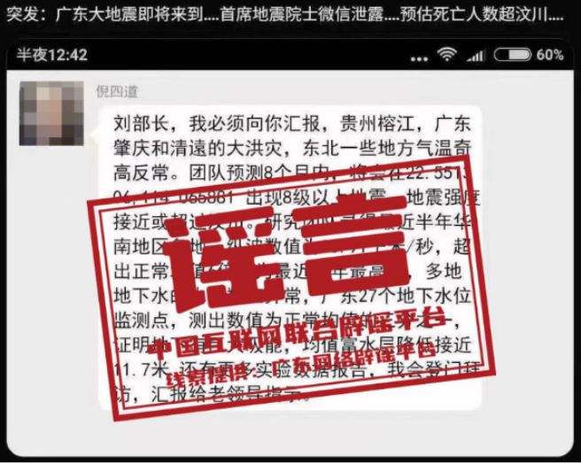 辟謠:網(wǎng)傳院士預(yù)測廣東將發(fā)生8級以上大地震?謠言!已報(bào)警